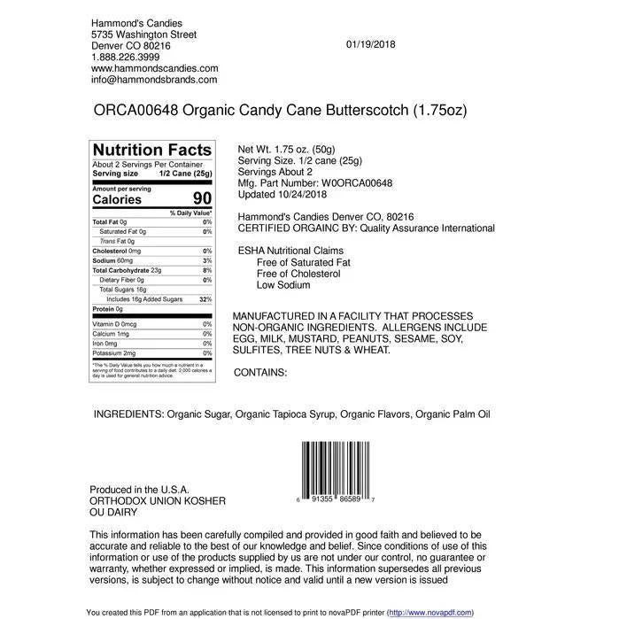 Hammond's Candies - Candy Canes - Butterscotch 1.75 oz