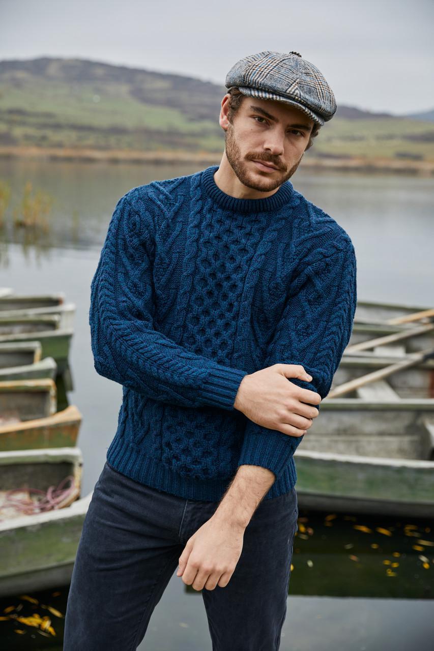 SAOL - Men's Merino Aran Sweater - Ocean Blue Large - MM208-110-LRG