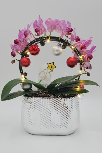 5" Orchid Phalaenopsis Hoop - Christmas Deco w/ LED Lights - T4846