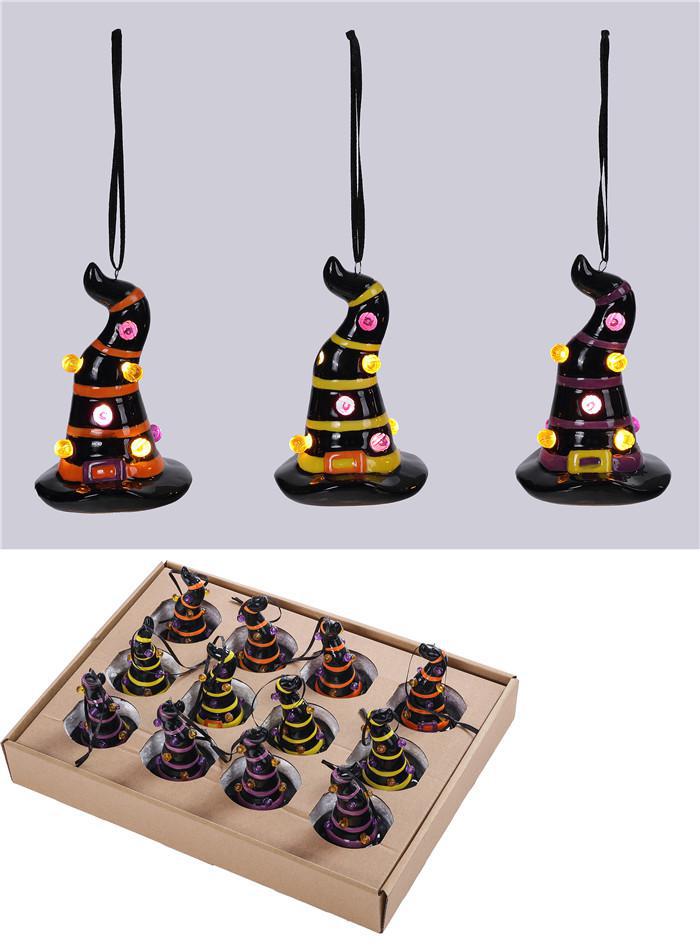 Special T Ceramic Witch Hat Glowing Ornament Assorted H24093
