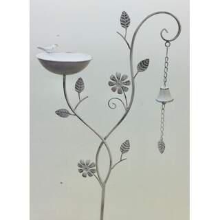 53”x15” White Birdbath on stake w/ bell 939-01193