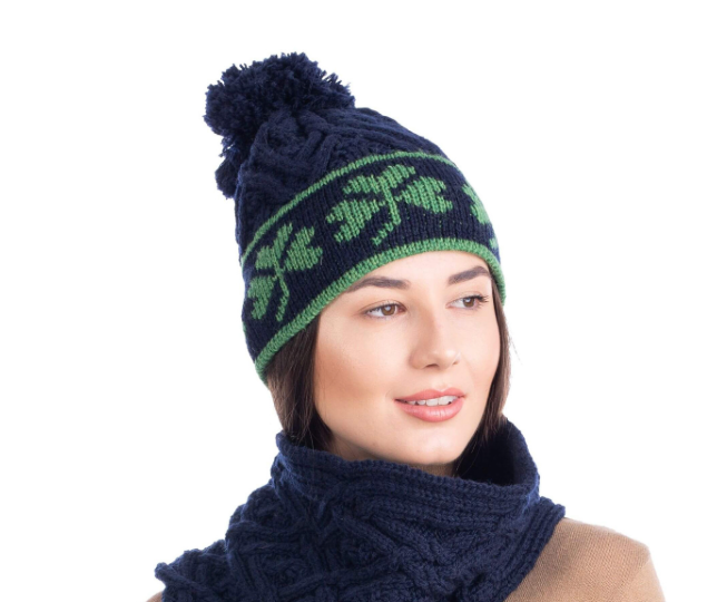 Saol - Shamrock Aran Wool Hat Navy ML201-104-OS
