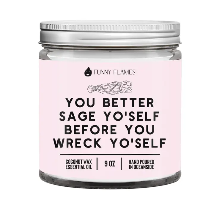 Funny Flames Candle Co - You Better Sage Yo'Self Before You Wreck Yo'Self 9oz