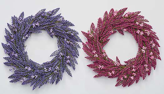 22" HEATHER WREATH WITH PURPLE FLOWERS ON NATURAL TWIG BASE 3537PU