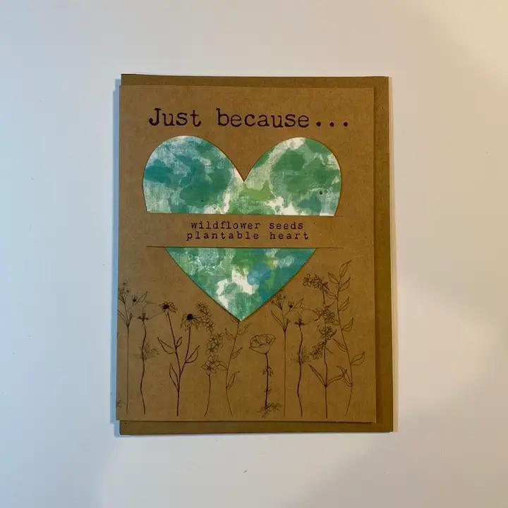 Raven's Edge Studio - Seed Heart Card - Just Because Green Tie Dye