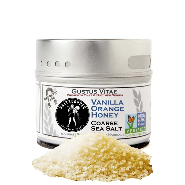 Gustus Vitae Vanilla Orange Honey Coarse Sea Salt Tin