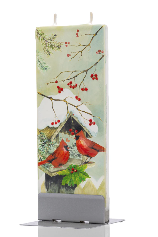 Flatyz - Flat Candle - Cardinals on Snowy Bird House - D24016