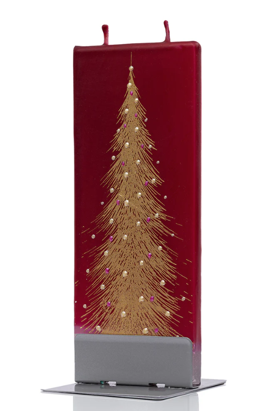 Flatyz - Flat Candle - Gold Christmas Tree on Red - F24101