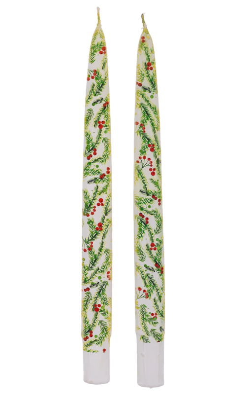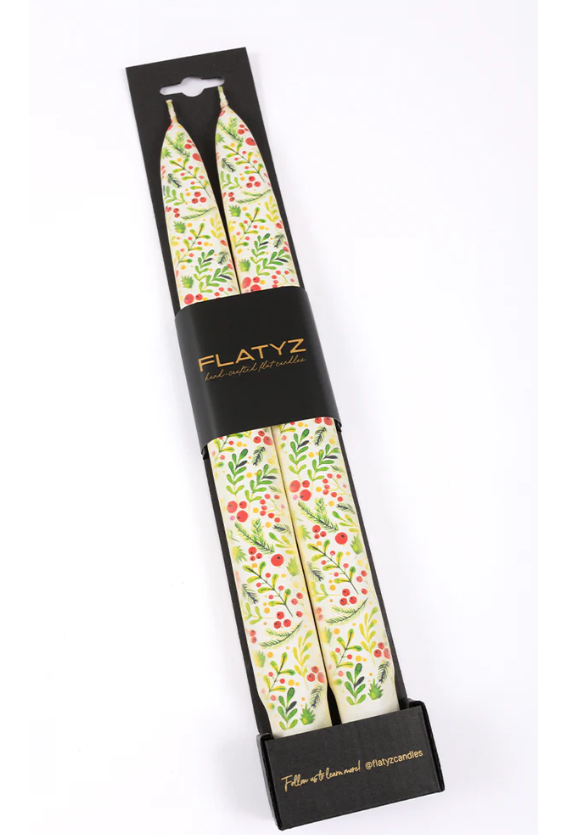 Flatyz - Winter Greenery & Holly Berries - Set of 2 Taper Candles - 24V217
