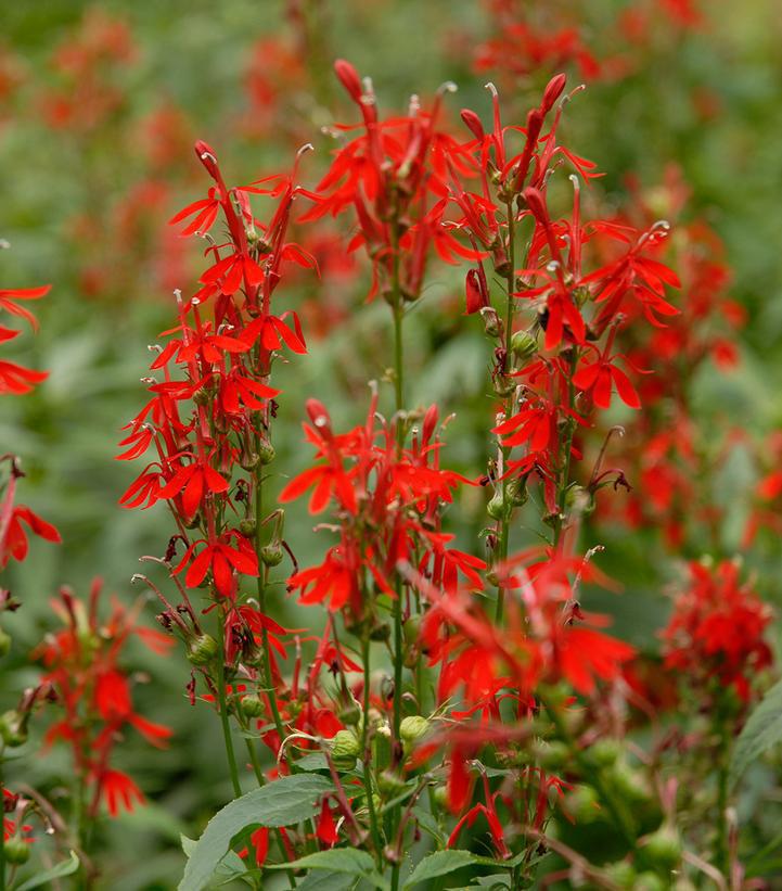 You'll find this classic American Beauties plant growing naturally in moist, swampy areas, but with a constantly moist soil it will thrive in your landscape and put on a stunning summer show. Plant it toward the back of the garden or around wetland features and in groups to put on the best show as this plant forms a dense clump of upright stems crowded with almost fleshy, medium green foliage. Buds form at the tops of these stems and give rise to a profuse amount of scarlet-red, two lipped tubular flowers in late July continuing right into September. Humming_birds find these flowers an irresistible source of nectar as do colorful butterflies like swallowtails, while spent flower heads and stems provide nesting to birds and cover for small native animals and insects.