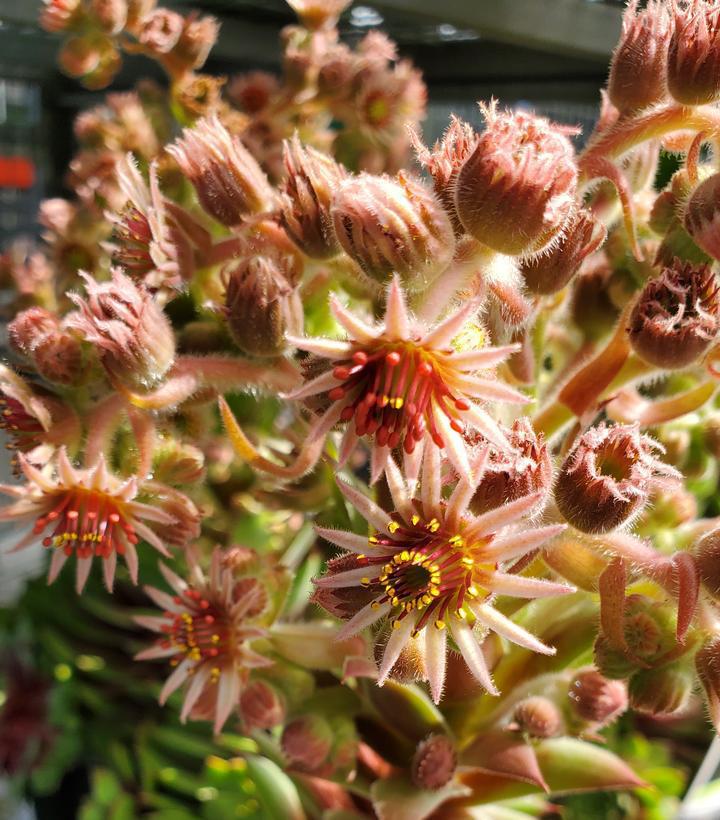 Everyone loves Hens & Chicks and this selection will reinforce that love with colorful rosettes of red and green fleshy leaves. In midsummer, clusters of rose purple flowers are held above the foliage on sturdy yet airy stalks adding great color to your garden through the season Great in rock gardens and perennial borders as edging. Spectacular in mixed perennial containers or in strawberry jar planters. Superb in rock gardens. Easy to grow and will thrive in the driest, sandiest of soils once established