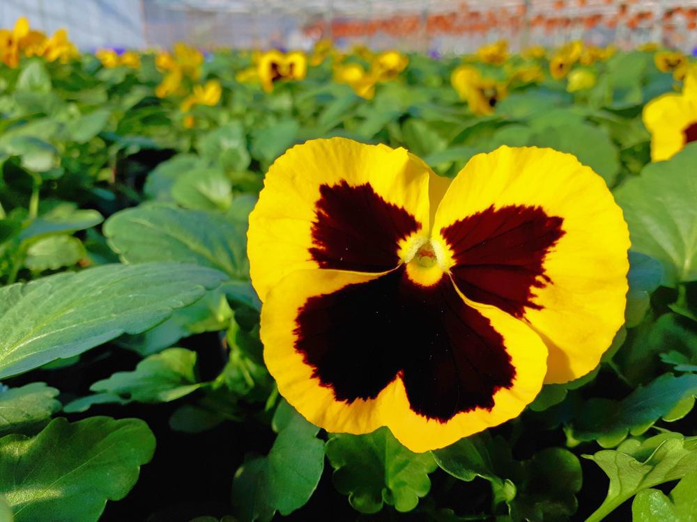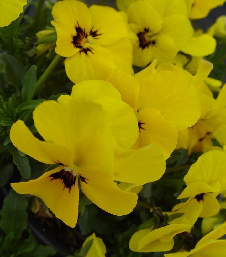 The Penny™ series of hybrid Violas tolerates more heat without becoming leggy. Incredibly robust for better over-wintering performance. Edible flowers! Penny™ Yellow Blotch boasts huge, bright yellow blooms with central black whiskers that flower continuously from beginning to end of season. Compact, mounded, easy to care for habit that is all color and no fuss!