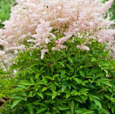 Astilbe is one of the tried and true perennials that even your Grandmother loved. Rest assured, this is not your Grandmother's Astilbe…it's your Grandmother's Astilbe on steroids! Dense, deep green, shimmering, tightly packed foliage forms a mound and a backdrop for 6 to 8" spikes that rise above the foliage in late May. These spikes develop with buds that open in June to a massive, stunning display of light, silvery-pink flowers that makes your grandmother's Astilbe look like a 97 pound weakling in comparison. The flower plumes appear much thicker due to the far greater bud count present on them than most other Astilbe. If that is too much information, all you need to know is that you won't find a better looking Astilbe anywhere!! Younique Silvery Pink™ looks great alone but amazing when grouped in a semi-shaded area with moist, well-drained soil.