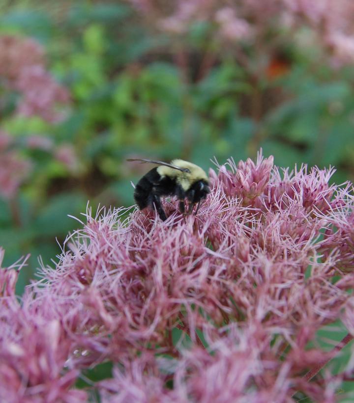If you are looking for a butterfly magnet to add fluttering color to your home landscape, you just have to grow 'Little Joe'. Like its bigger brother 'Gateway', 'Little Joe' is a July through September flowering machine with big domes of flower buds at the top of each of its multiple stems packed with deep green foliage that open to lavender-pink, long lasting blossoms. Word will get out into the butterfly world and you'll be amazed at the colorful creatures lining up to get a chance at this plant's sweet nectar. 'Little Joe' is easy to grow, thrives in moist areas or around ponds, is spectacular in groups and is more tolerant of partial shade than 'Gateway'. It's an indispensable American Beauties plant!!