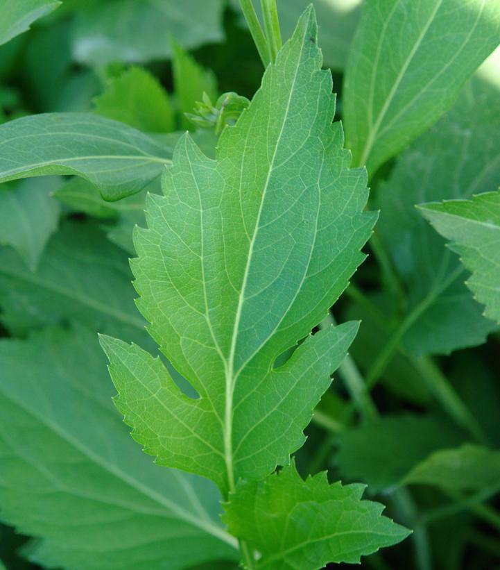 This large perennial is not your typical black-eyed susan - 5' tall mass of lobed green leaves create a sustantial presence in the garden or meadow. Large, lemon yellow flowers with a dark brown cone are held above the foliage on single stems. Blooming for more than 8 weeks, this native attracts butterflies all summer long. Tolerates hot humid summers but is not drought tolerant.