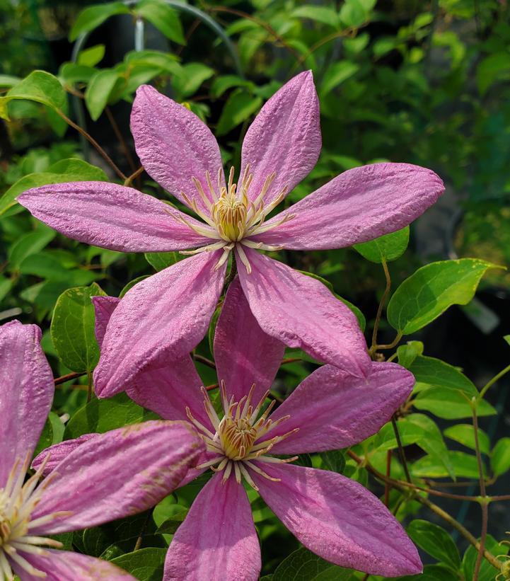 Normally pink-flowered clematis fade in strong sunlight but Sally holds its colour and is in fact a deeper colour when grown in strong sunshine.