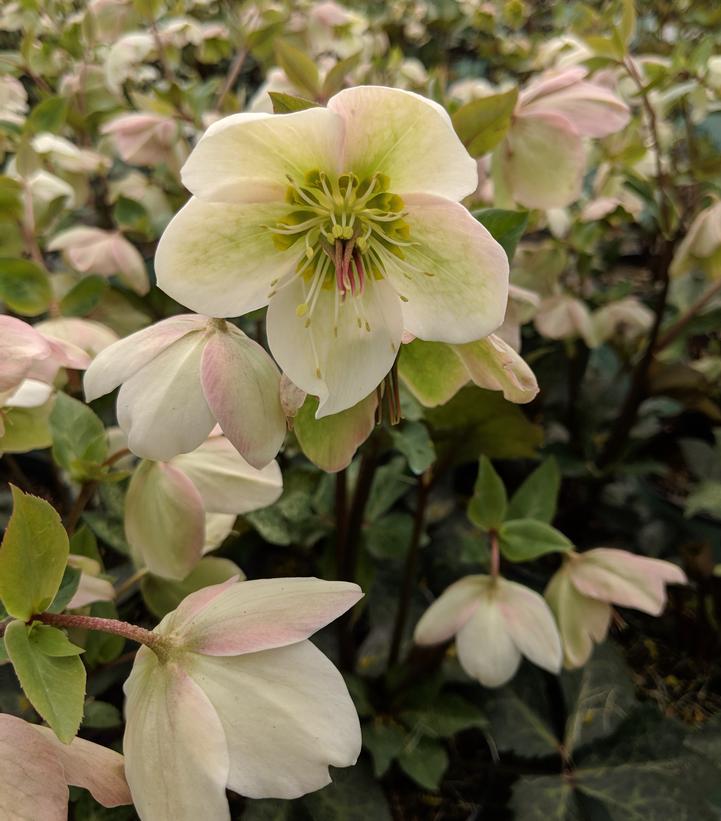Clean white blooms are large and in mass on this hybrid Lenten Rose backed with gorgeous silvery-green marbled foliage. Molly's White will brighten the partially shaded garden and will slowly naturalize. Like all of the Frostkiss® Hellebores, the evergreen foliage is attractive year round and the beautiful early spring blooms are early compared to other perennials but compared to other Hellebore they are one of the last to bloom, making this series a favorite for the shaded landscape!
