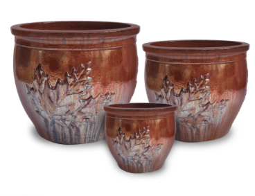 15.5" Maple Leaf Kettle Pot - Copper Glaze MPLF-S3-CO
