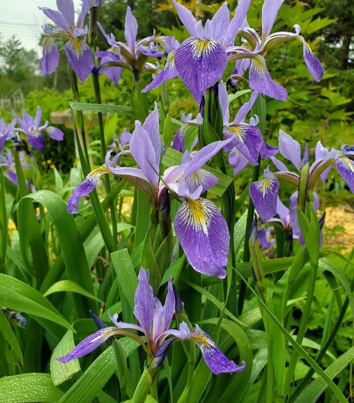 An absolute must for moist, sunny landscape areas and perfect for using around or in water features in the landscape, this Iris puts up with all the moisture and still provides a stunning show of flowers in the early summer months as sizable blue-violet flowers with white markings unfold above boldly veined sword-like foliage in late June. These flowers can further enliven the garden with the occasional hummingbird looking for nectar and by providing great cover for an assortment of colorful wetland creatures and colorful insects like dragonflies.