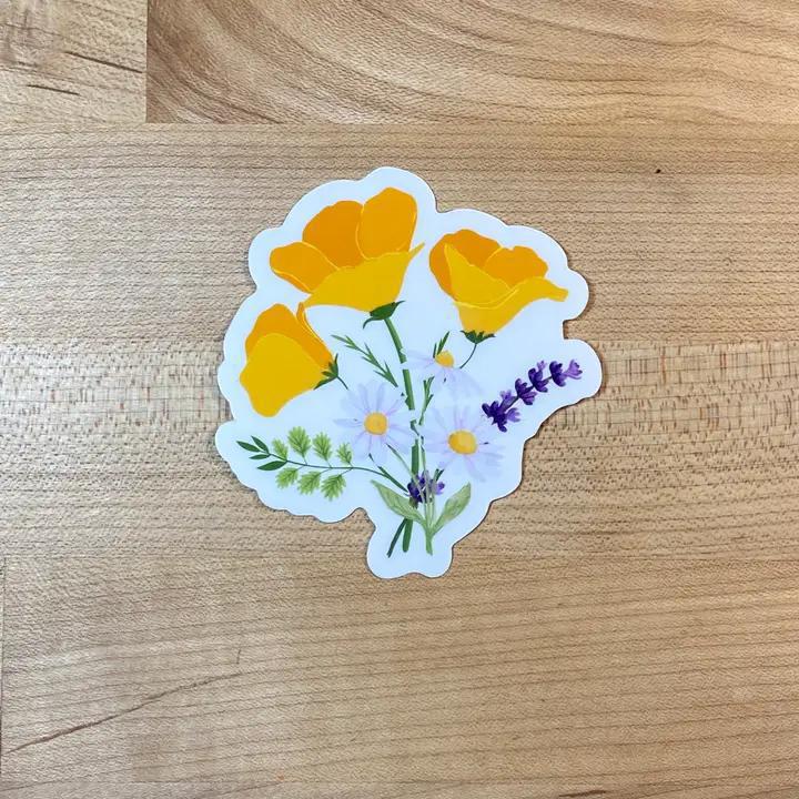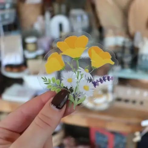 Raven's Edge Studio - Flower Sticker | Yellow Poppy Sticker | Clear Vinyl Sticker