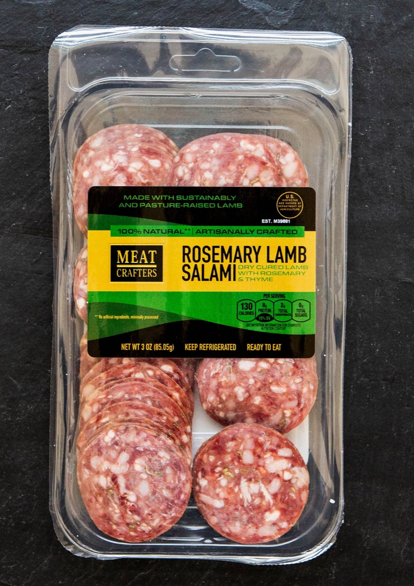 MeatCrafters Inc. - Classic Dry-Cured Lamb Salami - Rosemary & Garlic, Pre-Sliced 3 oz - 117S