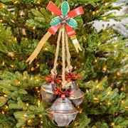 Zaer Old World Galvanized Christmas Triple Bells w/Bows ZR731220-B