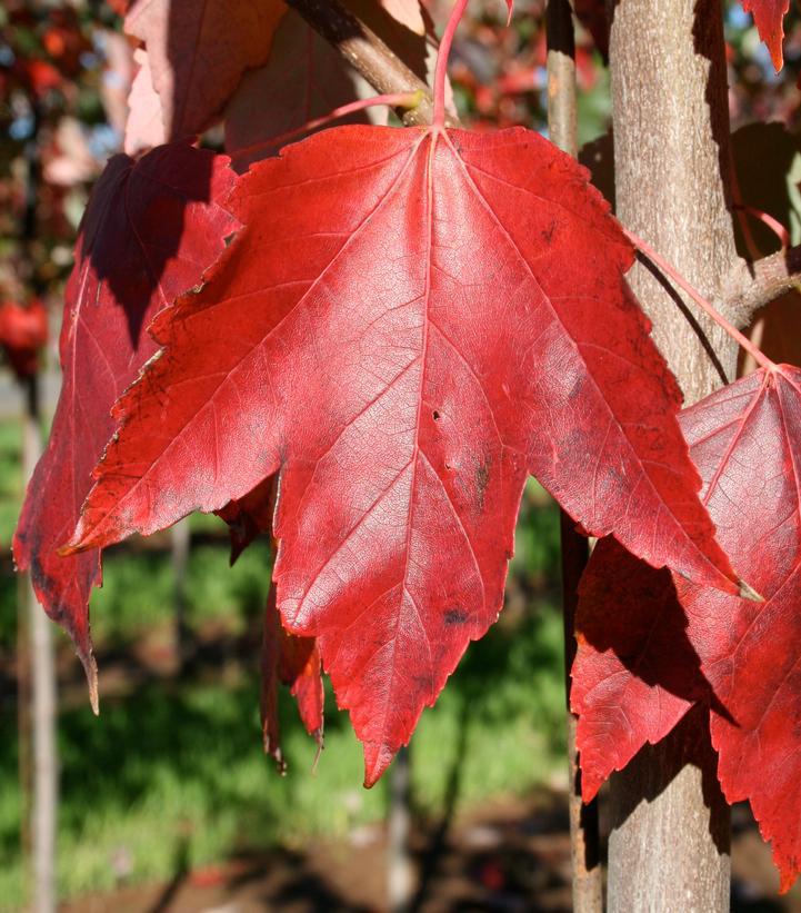 A great shade tree with a fiery red fall color that's simply stunning! Fairly quick growing with bright green, textured summer foliage, this selection has a stately pyramidal to rounded form and holds up well in any landscape.