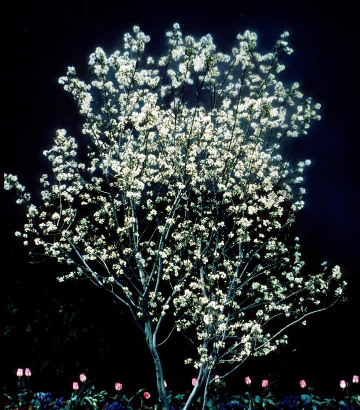 This selection has great attributes that add to the formal or natural landscape. Spreading and multi-stem in habit, it has great winter bark characteristics, pure white spring bloom, bright red fall foliage, and bird attracting fruit. A real winner!