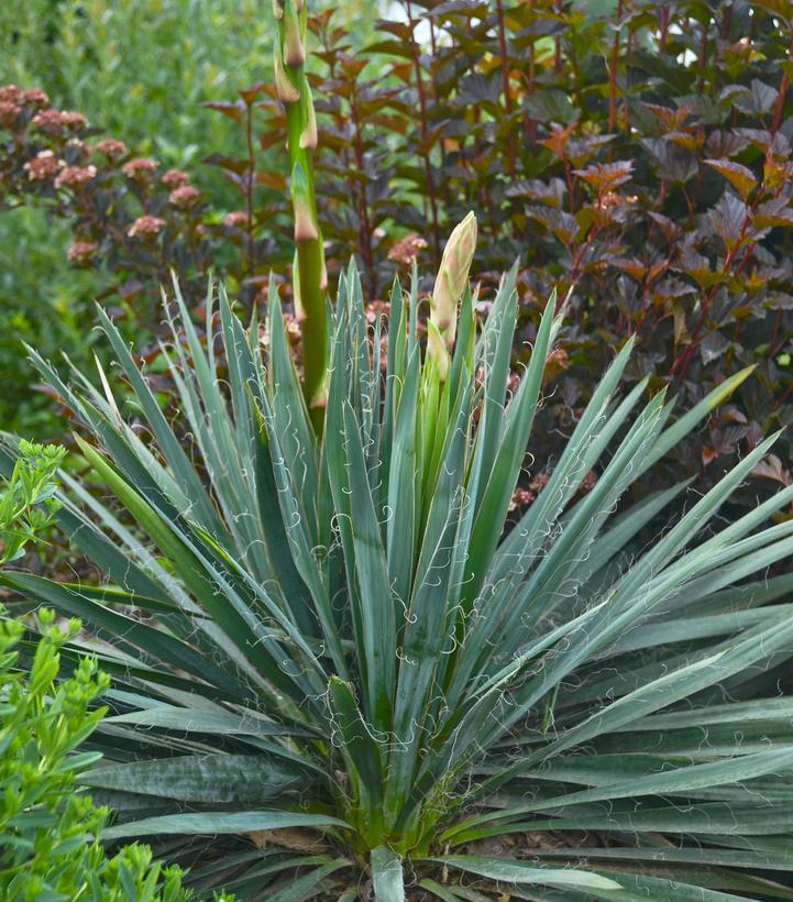 This yucca has beautiful blue green foliage with numerous curly, white filaments for added texture. It has a neat, round habit, smaller than the straight species. The amazing flower stems reach 4-5’ in height and it’s a host plant for skippers. A tough as nails perennial for sunny, dry sites including dry slopes.