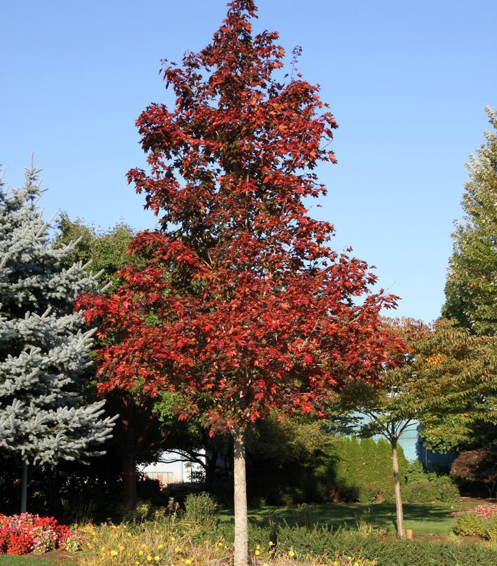 If you are looking for a deep purple shade tree that wont burn out in the hot summer sun Crimson Sunset® is the tree for you! A hybrid between A. truncatum and A. platanoides and with these two as parents you get a upright, compact form with deep purple foliage that resembles A.Crimson King. It flourishes in the summer heat where few purple leafed plants will grow. The fall color is quite eye catching and morphes from the deep purple to a maroon and finally a rich reddish-bronze.