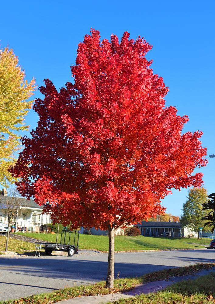 This cross between Acer rubrum & Acer Saccharinum will knock your socks off with its combination of solid structure, attractive form & amazing fall color. It combines well the habit of Acer rubrum with the fast growth and adaptable nature of Acer saccharinum. Its leaves are deeply cut, medium green for most of the season then change to brilliant red in the fall.