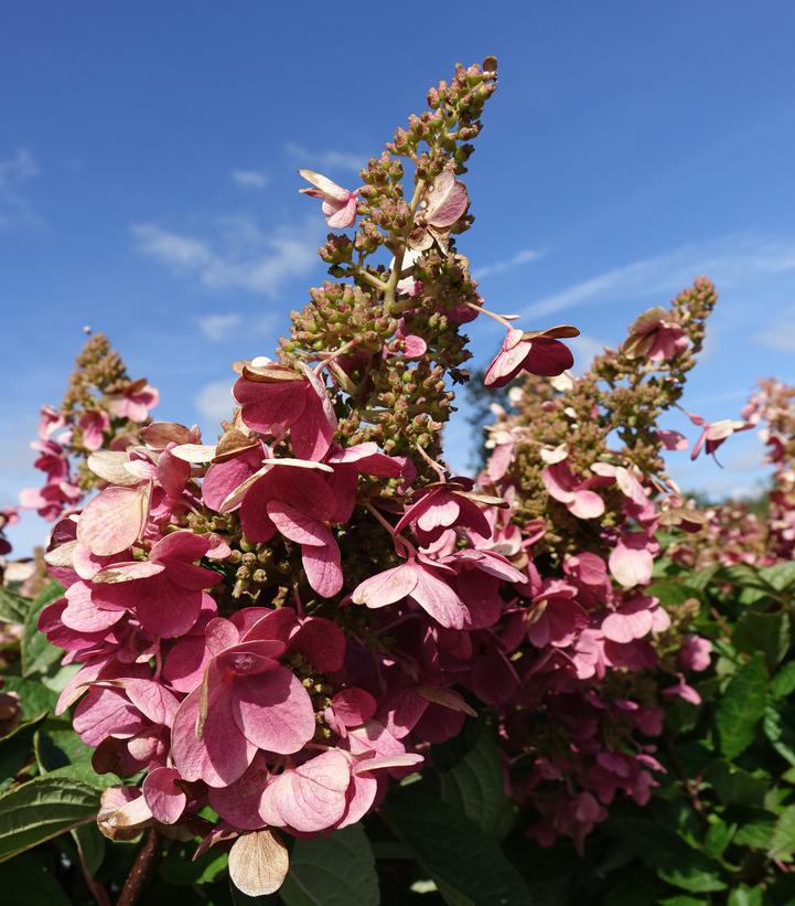 Hydrangea 'Pink Diamond' will never register a second thought with you once you see this stunning mutation that just blows that tried and true selection completely out of the water. That strong statement will be proved out as soon as you see 'Pinky Winky'® in bloom with its strong stemmed, rigidly upright bloom that is bigger, pinker, and far less floppy than 'Pink Diamond'. Its long lasting flowers will be a late summer treat you'll look forward to and enjoy well into the fall. Flowers emerge in late July and persist endlessly until you cut them to bring inside for the winter as a dried bloom. Use 'Pinky Winky'® as a specimen or create a bloomin' masterpiece of a hedge in a sunny or light shade location.