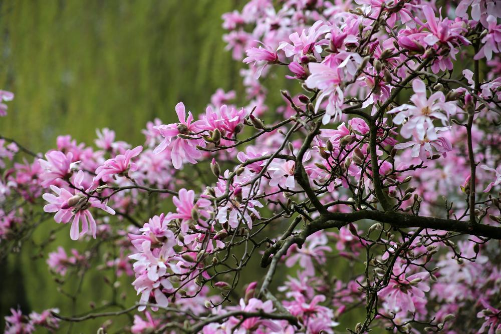 Who's ever heard of fireworks in late April? Your landscape will experience those fireworks and sparks will fly as the masses of star-like flowers featured by this selection explode in a burst of vivid fuchsia buds, opening to radiant purple. 'Leonard Messel' is so anxious to put on a show for us that its blooms arrive before the foliage in a staggering display of springtime coloration against a rounded array of gray barked branches. This explosive show takes place each year on a low branched specimen that is upright when young, but rounds in form as it ages. Plant in sun for full effect and give it some space to spread and dazzle you through the years.
