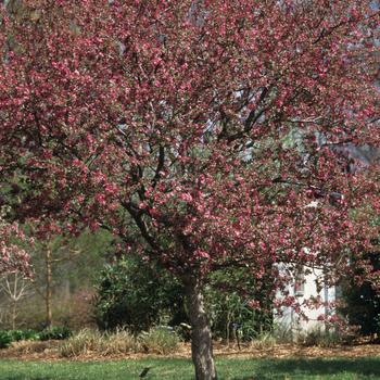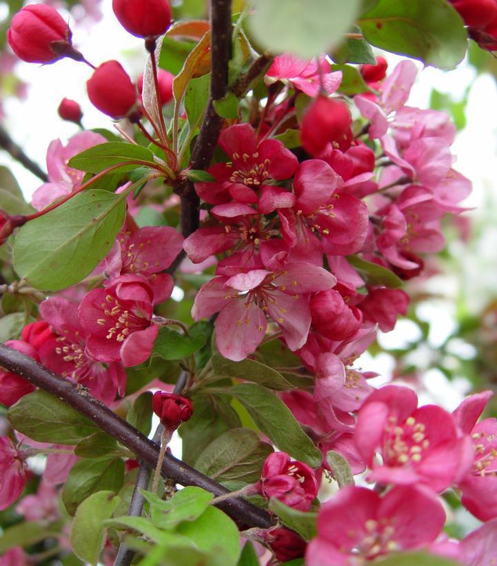 Disease resistance and great color are this plants calling card as masses of buds show deep red color in early May then open to an incredible array of showy single pink flowers. When flowers pass you find pleasing, deep green foliage that stands up well to the rigors of the summer weather, along with persistent deep red fruit by late summer that birds love. Add in a stellar fall foliage show of red and bright orange and you have a small tree to cherish.